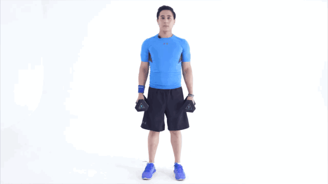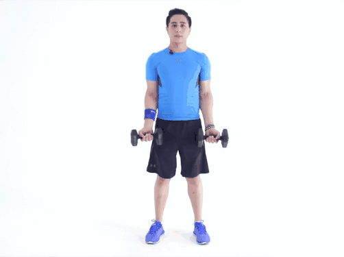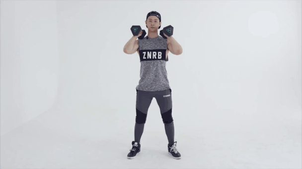 4.當上臂與地面平行時,將啞鈴舉回起始位置后重新開始。