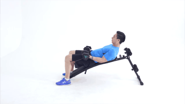 3.保持后臂下緣緊貼在斜板上,做彎舉動作。